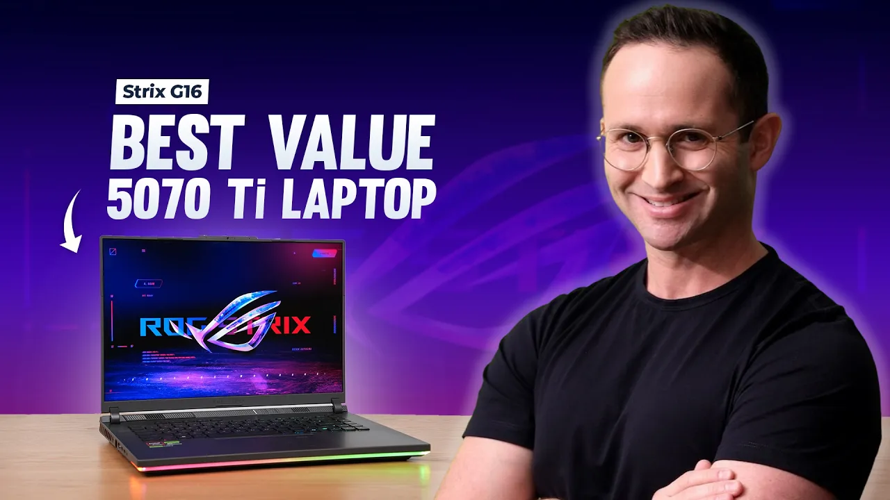 The Strix G16 is a high performance mid tier gaming laptop. If you are looking for max performance from a gaming laptop around $2,000 USD, this should be on your list It has AMD's highest end Ryzen 9 9955HX3D processor. This CPU is one of if not the best CPU available in a Windows laptop as of 2025. It's GPU is also fed max power so it performs exceptionally well. The model we tested with a 5070 Ti performed better than several 5080 laptops we've tested. However the laptop isn't perfect. Its expensive when not on sale. It is a thick laptop that comes up reasonably high off the desk. Its palm rest is slippery and rejects sweat. It's ports are far down the laptop, and it exhausts some heat on the back left and right side. If you use your mouse far back, you may feel warm air being blown on you. We feel if you want huge performance. This is a good laptop but you may want to look at the alternatives linked below too.